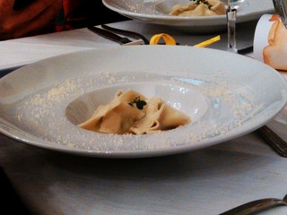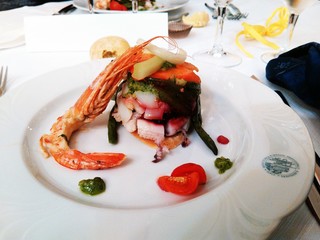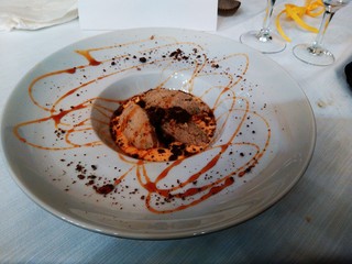 Abbiamo assaporato il menù e potremmo soffermarci per ore sull’ottima scelta di ingredienti di prima qualità e sulla loro preparazione: a cominciare dal “piccolo Cappon Magro”, circondato da gamberi succosi, teneri e profumati, dove la tenerezza del polpo ben si sposava con il gusto agrodolce della barbabietola; i raviolini ricotta e spinaci in crema di noci e profumo di maggiorana erano semplicemente perfetti in ogni dettaglio, non c’è bisogno di aggiungere altro; il filetto di orata in salsa bianca con contorno di verdure saltate al forno risultava leggero e delicato, un vero piacere per le papille gustative. Colpo di scena finale con un mix di sapori imprevedibili che chiudeva in bellezza la cena: l’ottima crema di castagne su salsa di cachi e crumble al cacao. Il tutto accompagnato da ottimi vini ma, soprattutto, servito con gentilezza, professionalità e con il sorriso sulle labbra dagli studenti.