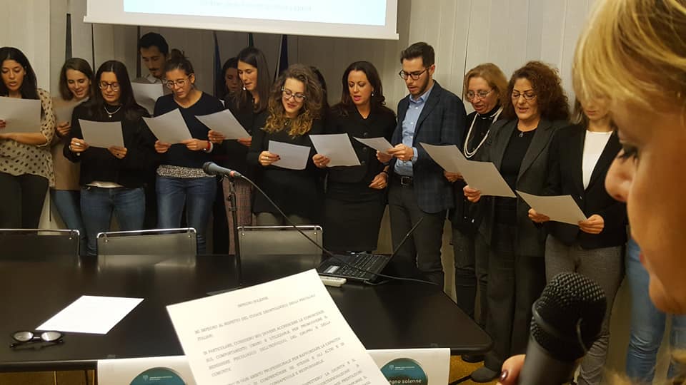 Promossa nel 2015 e diventata, da allora, una scadenza annuale, questa giornata si rivolge ai nuovi iscritti all'Ordine, che assumono pubblicamente le loro responsabilità di fronte ai colleghi e alle istituzioni impegnandosi al rispetto del codice deontologico, presupposto necessario alla valorizzazione del percorso che conferisce credibilità sociale alla professione di psicologo.
