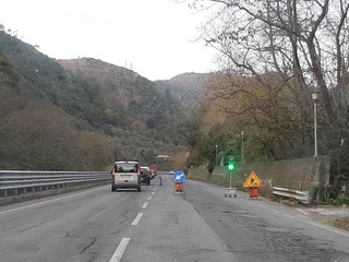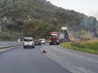 Vista la presenza sulla carreggiata dei mezzi utili per l’asfaltatura sono stati installati due semafori, uno in direzione Sassello, l’altro verso Albisola, permettendo di regolare così il traffico.
