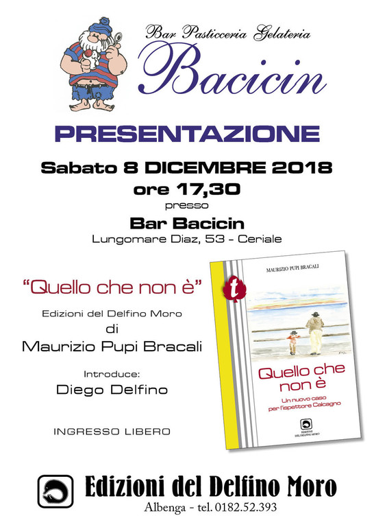 Si terrà sabato 8 dicembre la prima presentazione del nuovo romanzo giallo dello scrittore cerialese Maurizio Pupi Bracali dal titolo “Quello che non è” edito da Edizioni del Delfino Moro.