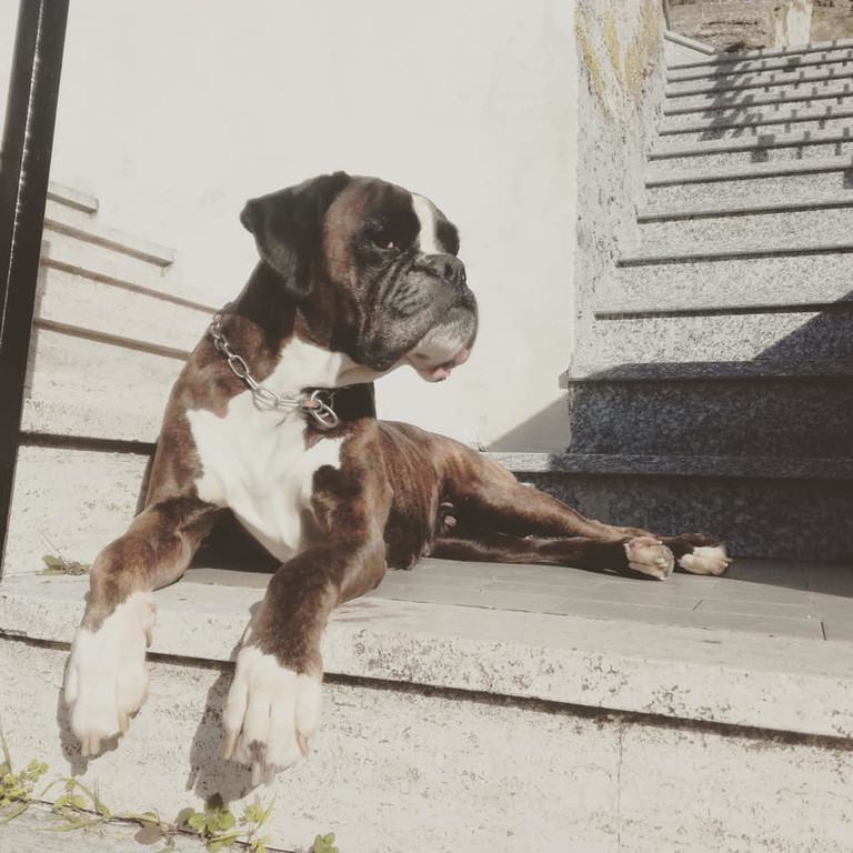 Love è una boxerina pura di 12 anni, la sua mamma umana è scomparsa qualche tempo fa e adesso questa bella cagnolina cerca casa.