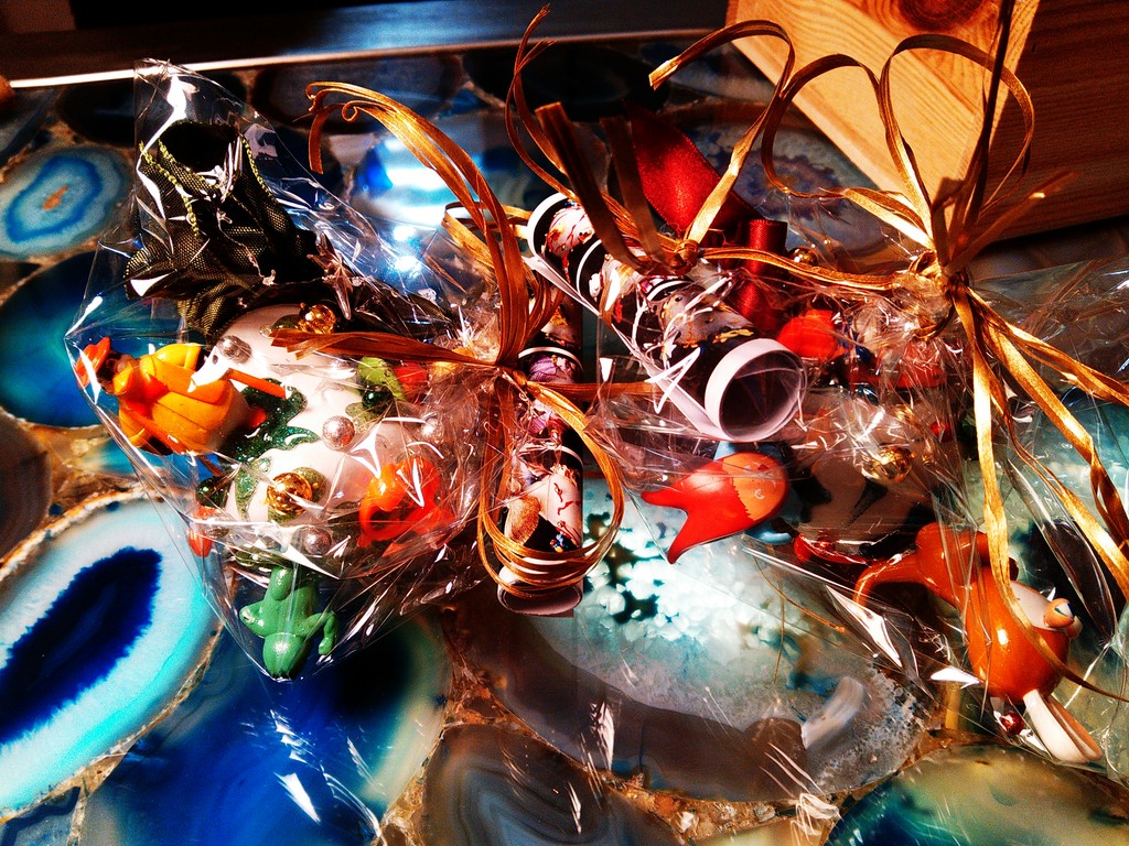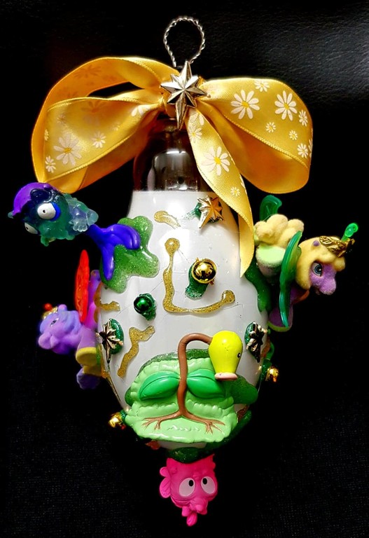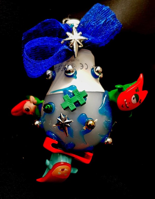“Si tratta di un supporto tecnologico che ormai va ad estinguersi, per cui diventano sempre più rare da trovare. Quindi si tratta di oggetti unici, tutti diversi per forma e dimensioni. Sono decorate con le sorprese degli ovetti o con altri piccoli giocattoli, viene applicato il fiocchetto ed il gancetto per poterle appendere”.