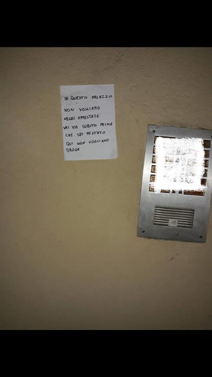 In una zona molto frequentata di Albisola Superiore, nei pressi della stazione, questa mattina è stato appeso un foglio con una dicitura razzista e dai toni minacciosi rivolti a un giovane nigeriano