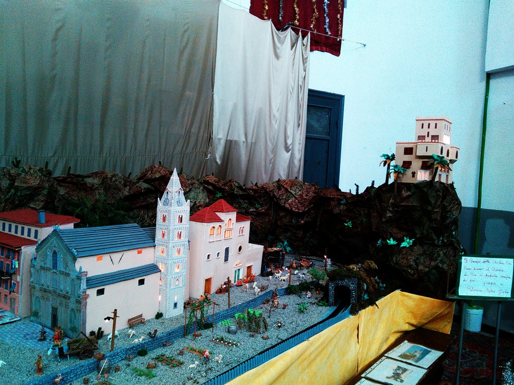 Un presepe “immerso” nel cuore della Finalpia del 1925, quando ancora il rione finalese faceva comune a sé stante e all’ombra del Castelletto si potevano ammirare il municipio e la stazione ferroviaria.
