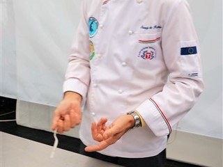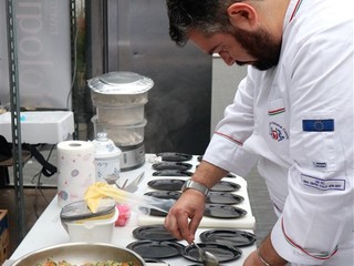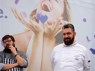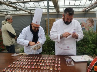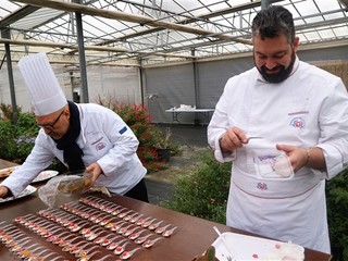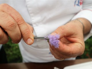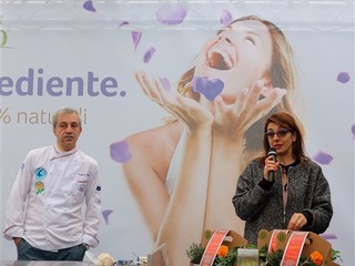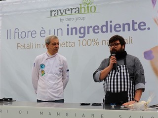 Lo Chef Giuseppe De Fecondo del ristorante St George di Borghetto Santo Spirito ha preparato un delizioso filetto di pesce su zabaione salato alla begonia. Ha raccontato la sua esperienza personale e illustrato alcune delle sue preparazioni, ottenute utilizzando le begonie, che danno un gusto acidulo gradevole ad ogni portata, la classica boragine, servita in tempura, le sfumature intense e piccanti del nasturzio e gli effetti di sapore e decorazione dell’agerato celestino. Quando parliamo di fiori eduli parliamo di prodotti coltivati secondo natura, senza l'utilizzo di prodotti chimici, raccolti e confezionati in ambiente sterile e con la sicurezza per il consumatore di mangiare sano, come recita lo slogan dell’azienda, che in pochi anni si è affermata nel campo di coltivazione dei fiori destinati all’alimentazione: tutto biologico certificato.