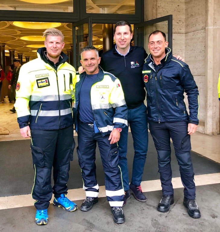 La delegazione costituita dal responsabile del Gruppo Intercomunale di Protezione Civile A.I.B. Valmerula Montorasio, Fabio Curto, dal capo squadra Peter Plagwitz e dal Volontario Claudio Caviglia, era presente all’interno dell’aula Paolo VI in Vaticano ed ad incontrato l'Assessore regionale alla Protezione civile Raul Giampedrone.