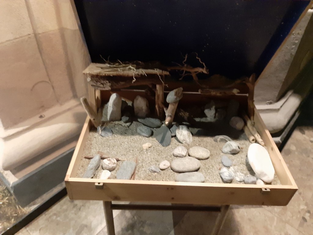 Inoltre realizzato dal gruppo di cresimandi della seconda media con il materiale lasciato dalla mareggiata, legnetti, sabbia e pietra, è stato allestito un particolare presepe: "Facciamo il presepe in famiglia! Basta un pò di fantasia e di semplicità del cuore".
