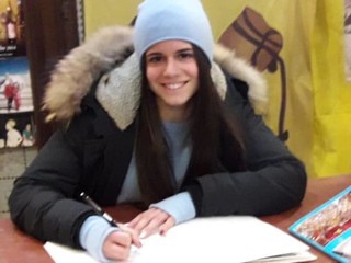 Accompagnata dall’orgogliosissimo nonno paterno Adriano Ghiglione, ha firmato la piastrella che verrà successivamente posta sul muretto di “E ghe mettu a firma!”, accanto agli autografi di altri campioni sportivi ingauni e non solo, tra le tante firme dei personaggi celebri ospiti dei fieui di caruggi.