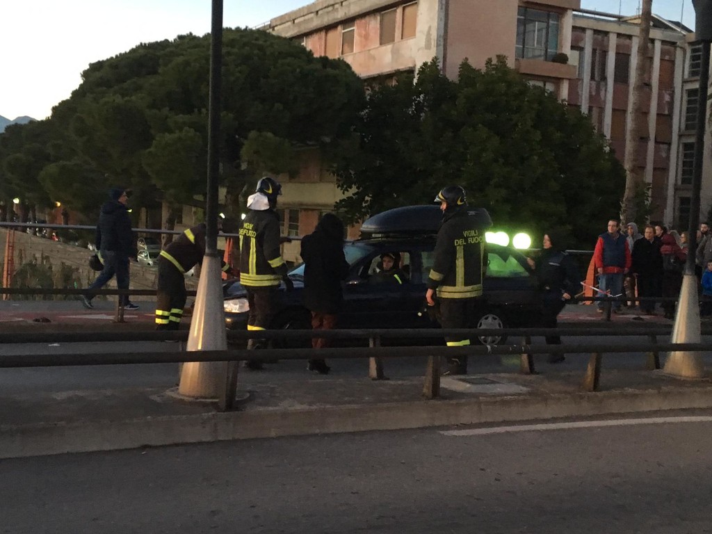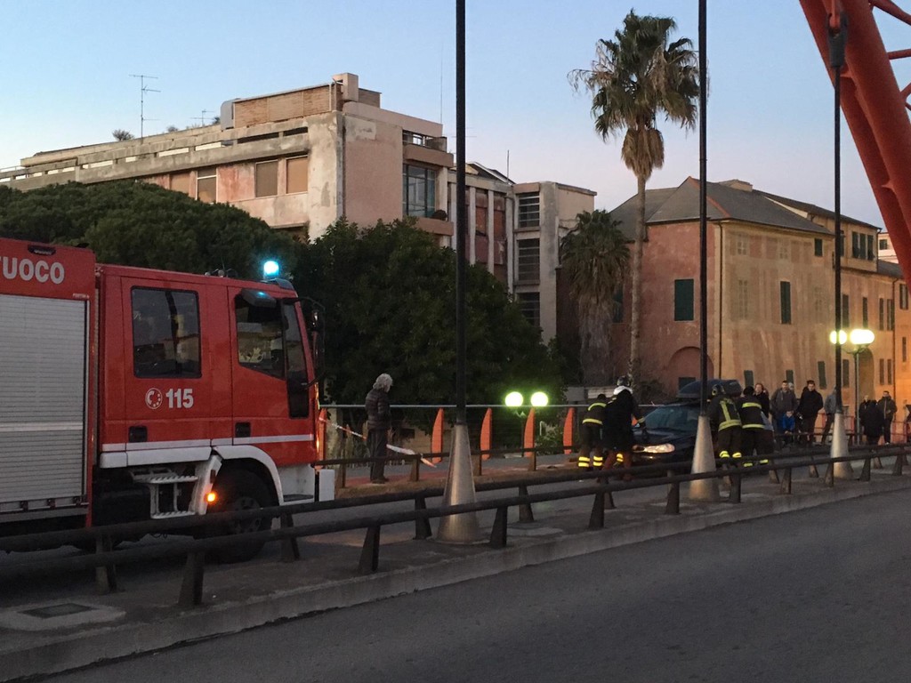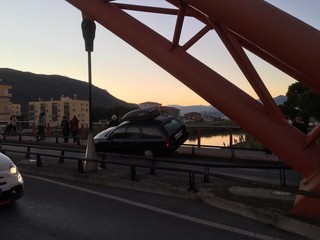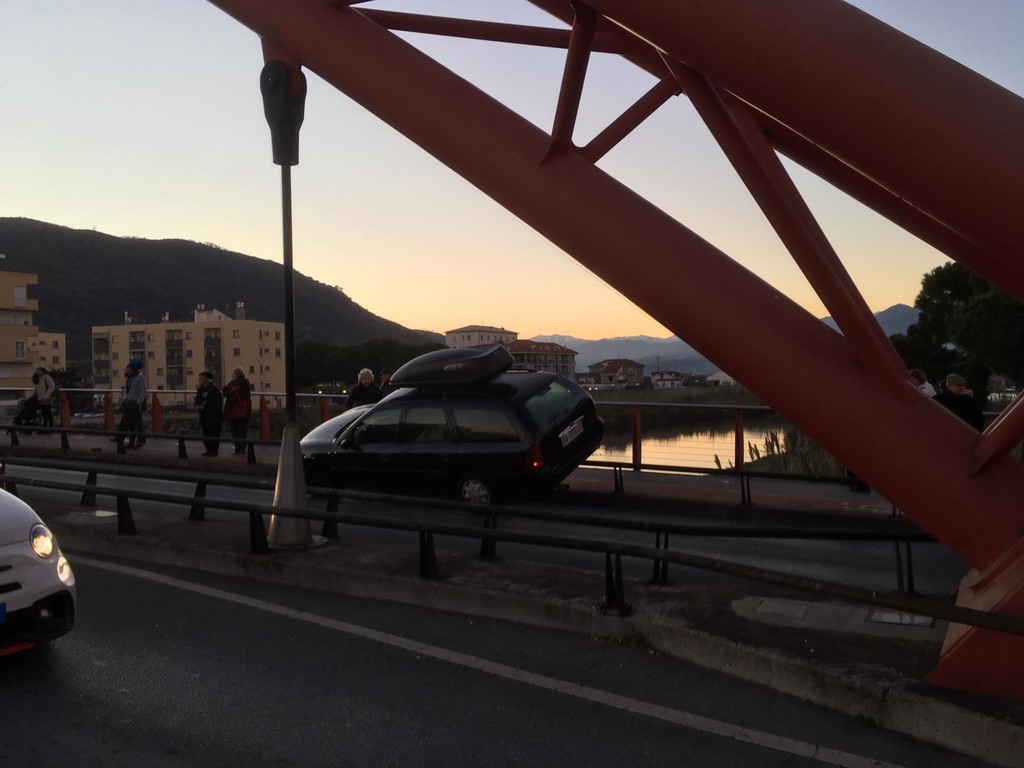 Incidente rocambolesco: automobile rimane incastrata sul "ponte rosso" tra il centro di Albenga e Vadino