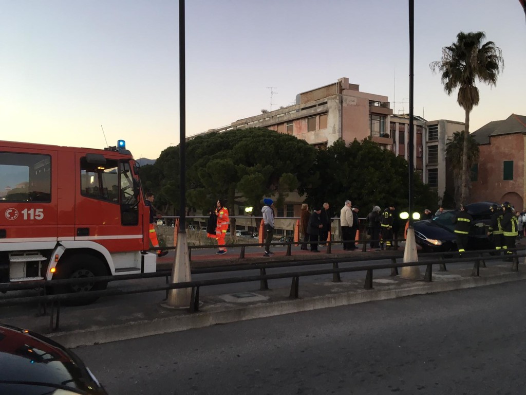 Ancora da chiarire le cause che hanno portato, attorno alle 17 di oggi, alla perdita di controllo di un'autovettura, una Ford Mondeo Station Wagon delle prime serie prodotte, sul "ponte rosso" di Albenga.