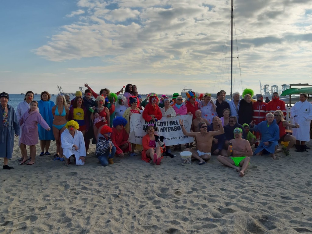 Intorno alle 11.00 i temerari, la maggior parte del gruppo dei "Nuotatori del tempo avverso", e molti travestiti da clown, si sono presentati ai nastri di partenza, pronti per il tuffo in mare. Ad assistere all'iniziativa gli assistenti bagnanti ed un mezzo della C.R.I. di Vado Ligure.