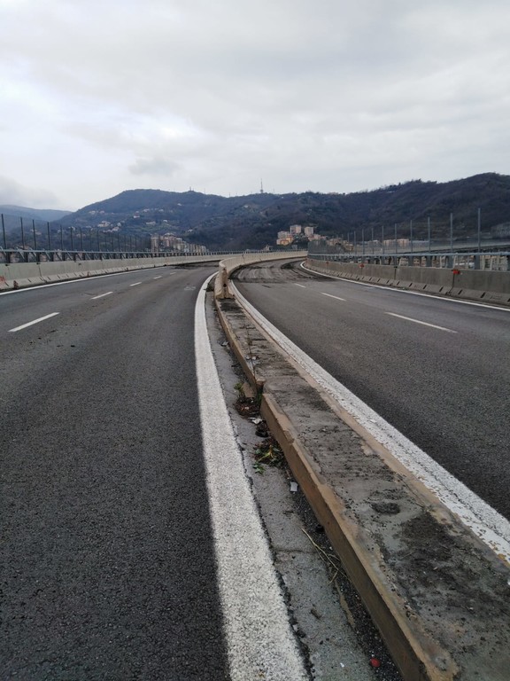 Proseguono presso il cantiere per la demolizione dei resti del ponte Morandi le lavorazioni. Le immagini delle attività di scarifica dell'asfalto e rimozione dei new-jersey sul troncone ovest del viadotto, iniziate lo scorso 17 gennaio. Domani, 21 gennaio, è previsto lo smantellamento delle carpenterie accessorie (materiale ferroso).