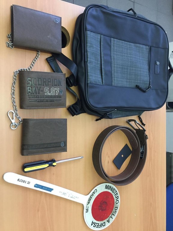 L'uomo, che aveva trafugato dalla vetrina del negozio Scorpion Bay tre portafogli, una cintura e una borsa, è stato bloccato dai Carabinieri.