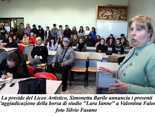 La cerimonia di conferimento si è svolta nell'aula del Liceo d'Arte (ex tribunale) alla presenza della preside Simonetta Barile, al vice prof. Andrea Ricci e agli studenti delle Quinte. Valentina era confortata dalla presenza della famiglia: papà Luca, mamma Loredana e sorella Francesca.