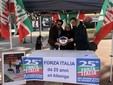 Questa mattina in piazza del Popolo ad Albenga, i militanti di Forza Italia nel gazebo del centrodestra di Albenga, al taglio della torta per festeggiare il 25° anniversario di fondazione del movimento politico