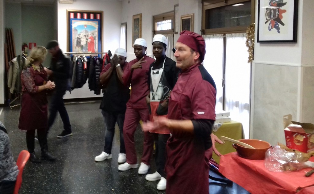 Si riparte dunque con una giornata in più, ma sempre con la stessa collaudata formula: ingresso con tessera Arci e offerta minima di €5 per primo secondo e contorno preparati ogni giorno da Roberto Decia, ormai diventato per tutti “Chef Roby” e dalla sua squadra formata da Siaka, Evans, Fousseny e Mamady, oltre a Success in sala, tutti giovani richiedenti asilo che svolgono questa attività come volontariato socializzante: aiutano gli altri volontariamente e, allo stesso tempo, hanno la possibilità di imparare una professione che potranno poi ‘spendere’, speriamo presto, nel mondo del lavoro. Stiamo lavorando su menù nuovi, v’invitiamo dunque a venire presto a provarli.