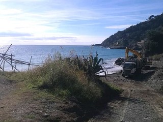Afferma il sindaco Mauro Demichelis: “Ruspe al lavoro sulla scogliera a rischio frana al fondo della passeggiata a mare di ponente. Un investimento economico risolutivo da 400mila euro.”
