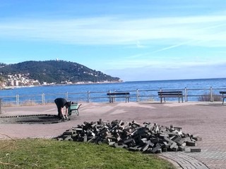 Lavori in corso ad Andora per il rifacimento della scogliera che si trova alla fine della passeggiata (nei pressi della spiaggia adibita agli animali).