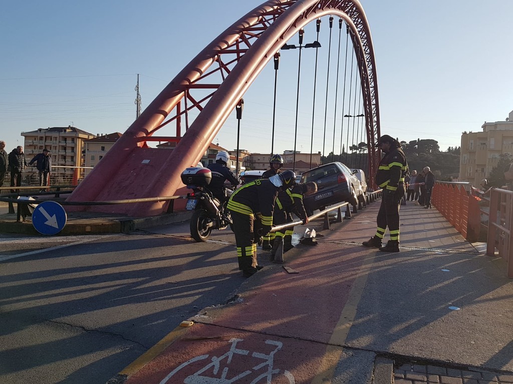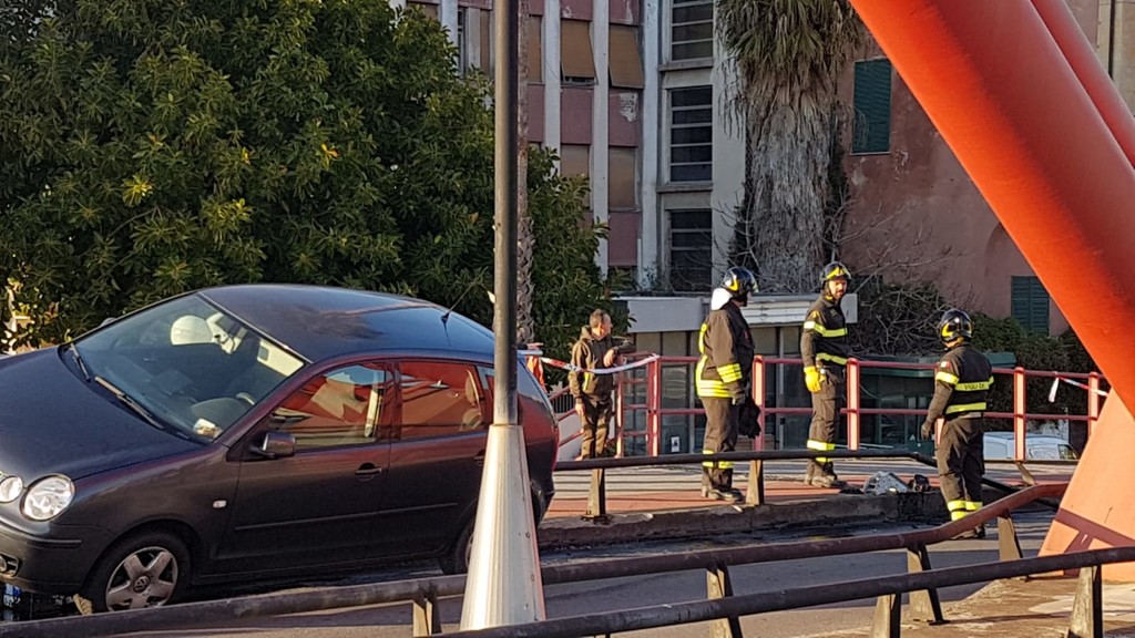 Albenga: incidente sul ponte rosso, auto rimane "incastrata" (FOTO e VIDEO)