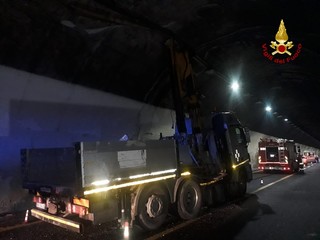Un camion ha imboccato la calleria con il braccio del "ragno" alzato