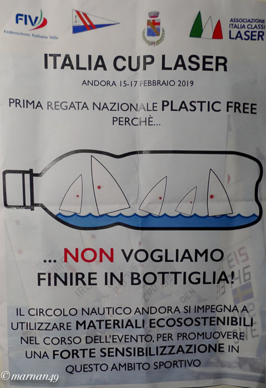 La prima Regata Nazionale "Plastic Free", è iniziata ieri, 15 febbraio, nel mare antistante Andora e terminerà domenica 17 febbraio. Il porto di Andora ospita l'evento col patrocinio del Comune. Andora in questo caso è la prima città italiana a realizzare una regata di questo tipo. L'iniziativa è stata talmente apprezzata dalla Classe Laser, che ha deciso di replicarla in tutte le competizioni nazionali di categoria.