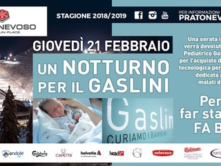 Una serata di sci sulle nevi di Prato Nevoso per raccogliere a favore dei bimbi del Gaslini. Giovedì 21 febbraio si svolgerà “Un notturno per il Gaslini”: la stazione sciistica di Prato ha scelto di devolvere l’intero incasso della serata e dello sci notturno alla campagna pro Gaslini. Le piste saranno aperte dalle 20 alle 23 al costo dello skipass di 14 euro. Con il ricavato di questa iniziativa grazie a Prato Nevoso, il Gaslini attrezzerà un ambulatorio per i piccoli pazienti che hanno terminato le cure oncologiche.