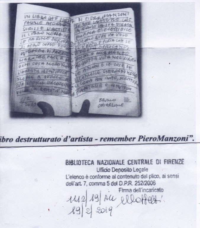 Leggere un libro è un atto di libertà e un desiderio di fantasia da trovare ben de-scritta nero su bianco; leggere un libro non è uscire dal mondo, ma entrare nel mondo attraverso un altro ingresso (Fabrizio Caramagna). Comporre un libro con testi e immagini (libro d’artista) è dare una nuova dimensione visiva ai lettori. Usare pennello e collage per fabbricare un libro d’artista porta il libro in altri ambiti, in diverse situazioni e maggiori occasioni d’incontro.