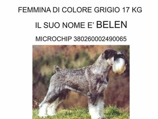 Smarrita ormai da giorni la dolce Belen, uno schnauzer sale e pepe di media taglia scappata al controllo dei suoi padroni in zona San Bartolomeo del Bosco a Savona.