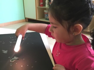 L'idea è stata quella di progettare una giornata di attività volta alla sensibilizzazione alla tematica e che avvicinasse i piccoli ospiti del servizio ai concetti di "luce-ombra", "chiaro-scuro", attraverso l'utilizzo delle candele. Provare ad accenderle, scoprire che la cera si scioglie, cola...e lascia una traccia!
