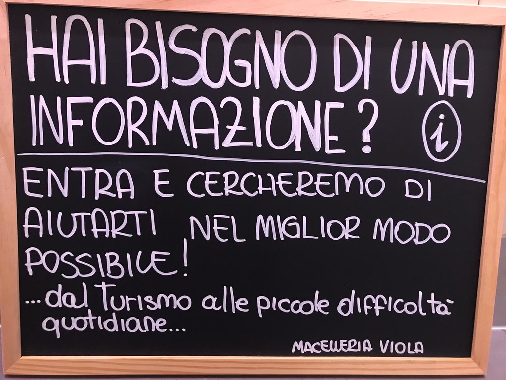 Ci raccontano Carolina e Nicole: “Capitava già spesso che, essendo situate in una via di passaggio, entrasse un turista a chiederci informazioni sulla farmacia più vicina, o su una strada che doveva raggiungere; talvolta passano anziani che ci chiedono qualche chiarimento per le singole voci di una bolletta, o addirittura si fidano talmente di noi da chiedere di andare a pagargliela, perché magari hanno problemi di deambulazione… Così ci siamo dette: perché non ‘ufficializzare’ la cosa mettendo un cartello davanti alla nostra attività nella quale ci mettiamo a disposizione come punto di informazioni?”