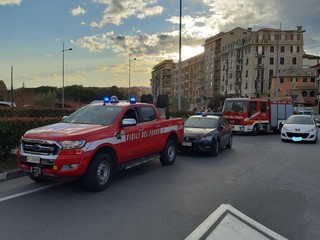 Auto in fiamme nel parcheggio Ata davanti al Priamar a Savona.