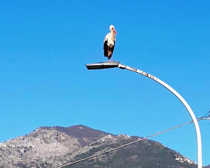 Continua il passaggio delle cicogne in migrazione dall’Africa al nord Europa; ieri a Loano una di esse si è riposata per qualche ora su un lampione in via Bulasce; i volontari della Protezione Animali l’hanno controllata a distanza per verificare che non fosse in difficoltà ma il volatile ha fugato ogni dubbio riprendendo più tardi elegantemente il volo.