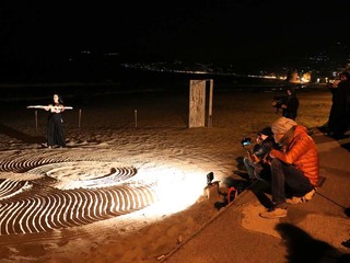 In un'atmosfera surreale, molto diversa dalle classiche inaugurazioni di mostre d'arte, l'artista Chiara Mazzocchi, di origini andoresi, divenuta conosciuta internazionalmente, ha presentato le sue opere anticipando il vernissage con un performance artistica sulla spiaggia antistante la galleria. Artista indipendente e poliedrica.