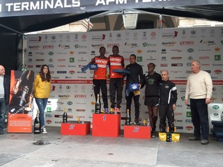 John Hakizimana, atleta del Kenya, si aggiudica questa quinta edizione della Savona Half Marathon con il tempo di 1.03.45.