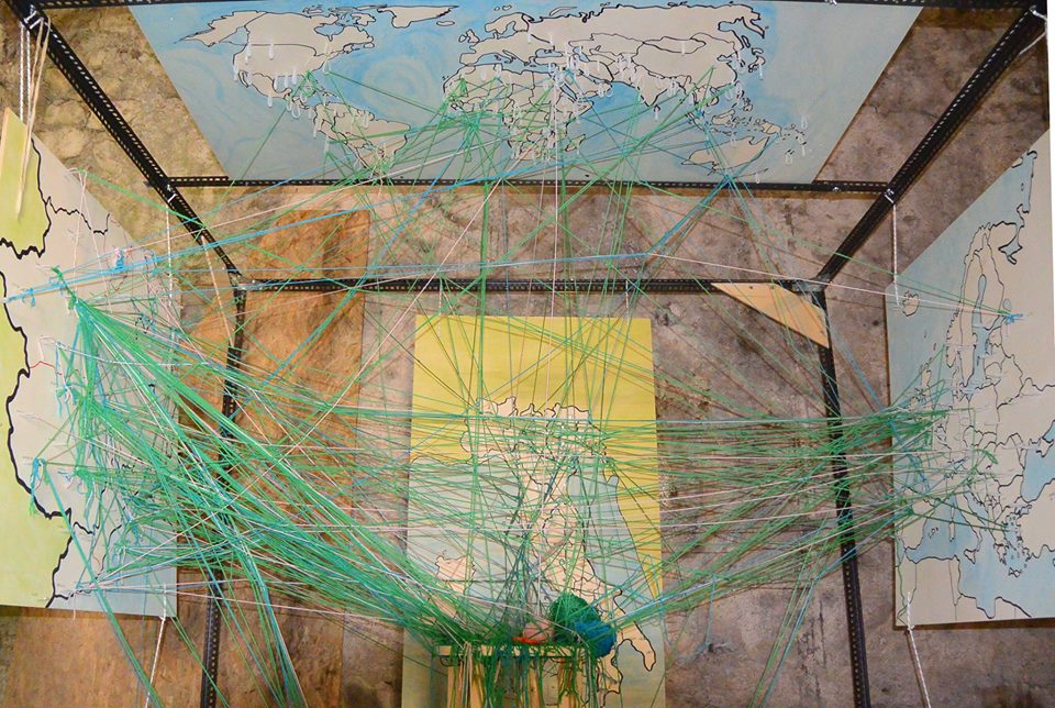 Gli studi sul genoma umano dimostrano come sia raro individuare popolazioni in cui le contaminazioni siano state poche nel tempo. In Italia la sola Sardegna mostra scarse tracce genetiche di contaminazioni, frequentissime nel restante territorio. E' interessante proporre al pubblico di partecipare ad un'istallazione, narrando le migrazioni della propria famiglia... “Poniti al centro della terra e collega con dei fili colorati i luoghi toccati dalle migrazioni tue e dei tuoi genitori.” In quanto tempo l'istallazione (un cubo con rappresentate sulle pareti le differenti aree geografiche del globo) si trasformerà in un inestricabile groviglio di incroci? Quante volte gli spostamenti della tua famiglia si sono incrociati con quelli di chi arriva in Italia oggi varcando frontiere più o meno difficili da superare?