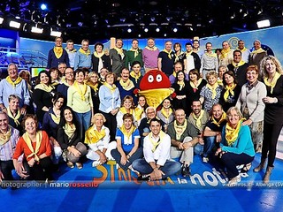 Sugli schermi appariranno decine di foulards gialli con impresso il simbolo dei monelli ingauni. E tutti avranno il loro fazzolettone personalizzato, dal Gabibbo alle Veline, dal regista ai cameramen. Persino il cagnolino Fake.
