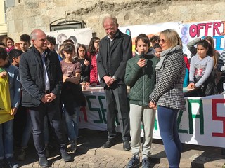 Presenti il Sindaco Cangiano e Maurizio Arnaldi Consigliere alla Pubblica Istruzione ai quali presenteremo le nostre riflessioni, i bisogni, i desideri e le speranze per un mondo più giusto.