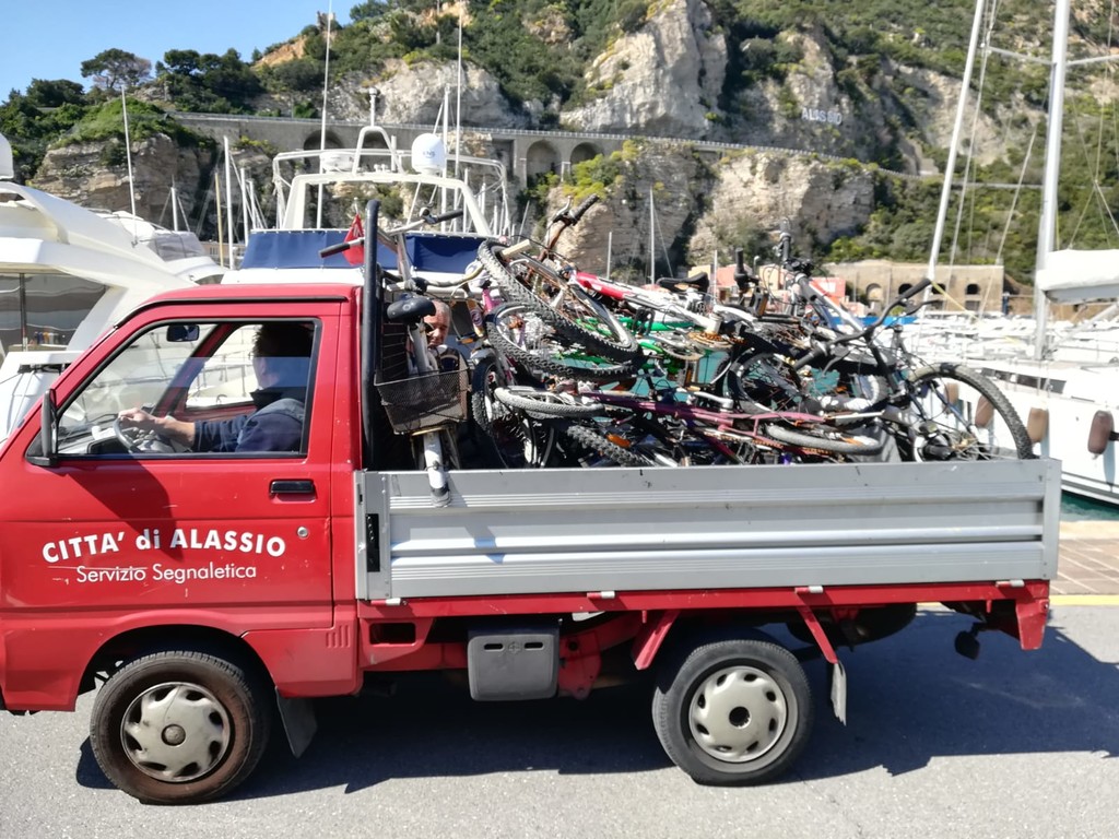 Alassio, rimosse le bici abbandonate (FOTO)