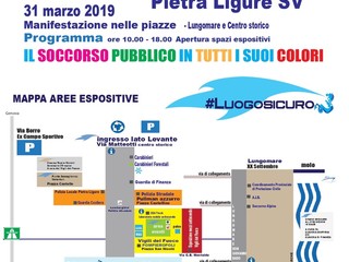 La giornata di domenica 31 marzo sarà una grande festa di piazza. Dalle 10.00 alle 18.00, presso il Centro Storico ed il Lungomare di Pietra Ligure, saranno allestiti gli stand di Vigili dei Fuoco, Polizia Stradale, Carabinieri, Carabinieri Forestali, Guardia di Finanza, Guardia Costiera, Croce Rossa Italiana, Polizia Locale di Pietra Ligure, Coordinamento Provinciale di Protezione Civile, A.I.B., Soccorso Alpino, Unità Cinofila, Misericordia, P.A. Pietra Soccorso, Associazione Maia, CEA Truck (laboratorio mobile antincendio), Indiveri Crash Test e ALMA Antincendio.