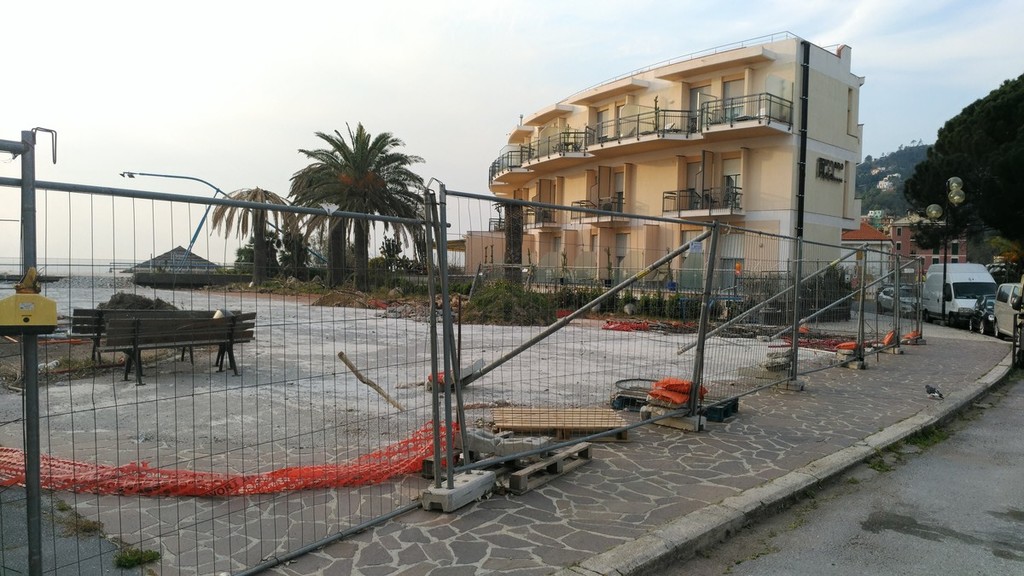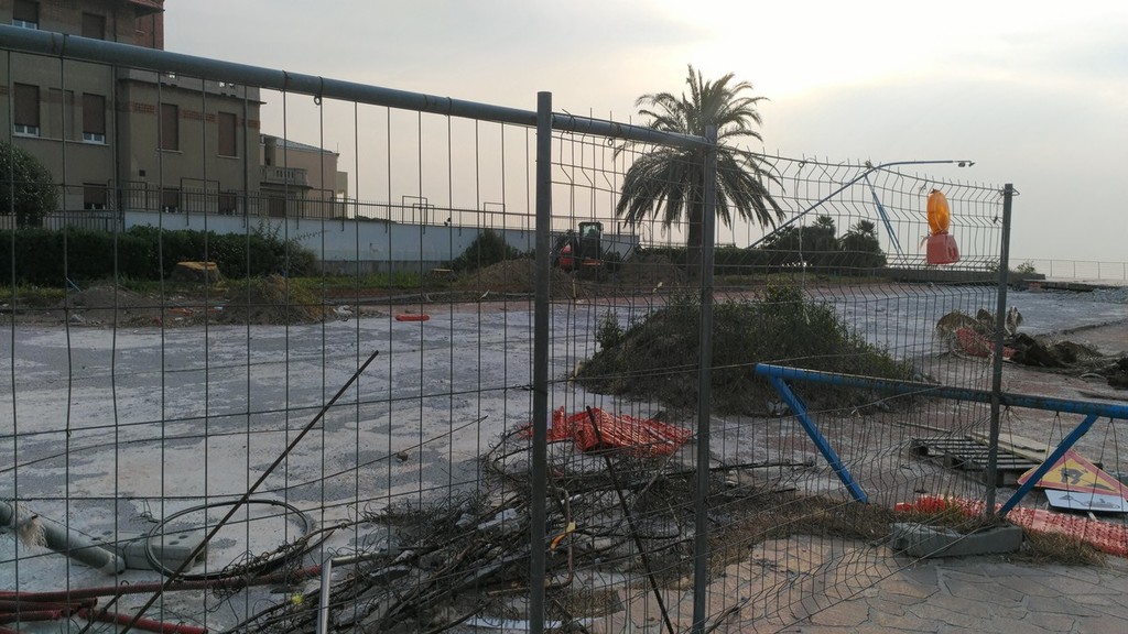 A parte alcune palme abbattute colpite dal punteruolo rosso, tutto giace inerme da immemore tempo. Il gruppo Spotorno che Vorrei, nel gennaio 2018, aveva chiesto informazioni e presentò interpellanza per questo intervento, che sembra oramai divenire infinito. La cittadina di Spotorno ha trascorso una festività natalizia ed una pasquale con l'imminente arrivo della seconda, con un cantiere in totale stato di abbandono.
