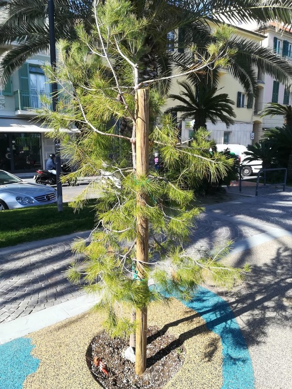 Il pino rappresentato in fotografia, appena piantato sul Lungomare Migliorini, tra una decina d’anni farà saltare la pavimentazione, tra una ventina sarà già troppo grande per la sua collocazione e tra una trentina d’anni qualcuno penserà ad abbatterlo per la sua pericolosità.