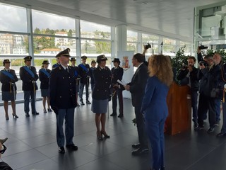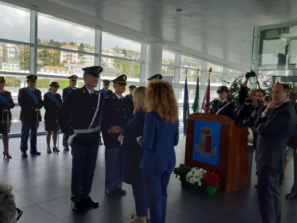 Ha poi preso la parola il Questore Giannina Roatta, al primo discorso dal suo insediamento a Savona, per un indirizzo di saluto ai partecipanti, al termine del quale sono stati consegnati i riconoscimenti per meriti di servizio conferiti agli operatori della Polizia di Stato che si sono particolarmente distinti in operazioni di Polizia Giudiziaria ed in attività di soccorso.