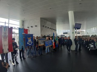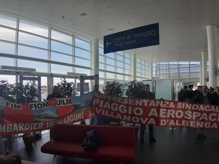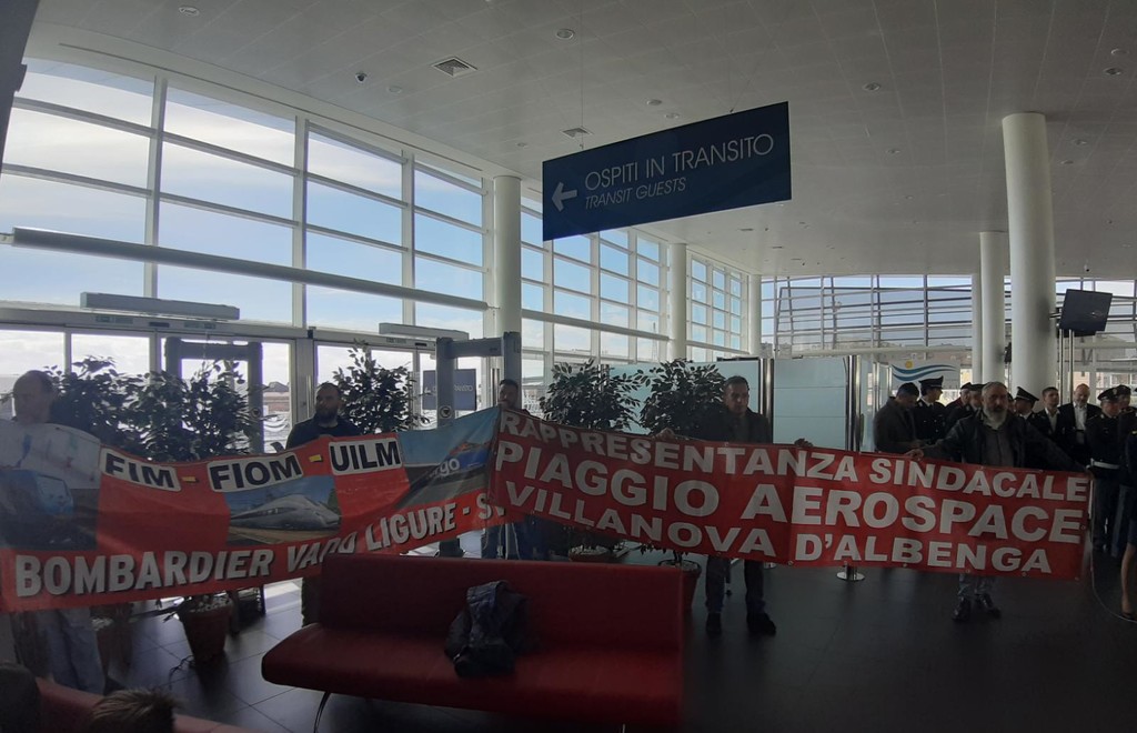 Alla cerimonia ha preso parte anche una delegazione di Piaggio e Bombardier con due striscioni.