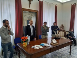 Il sindaco Franco Orsi ha consegnato insieme al vice sindaco Garbarini e agli assessori Luca Ottonello e Roberto Gambetta una targa celebrativa per il quale vengono solitamente insigniti gli albisolesi che si sono distinti per meriti sportivi, culturali, civico o professionali.