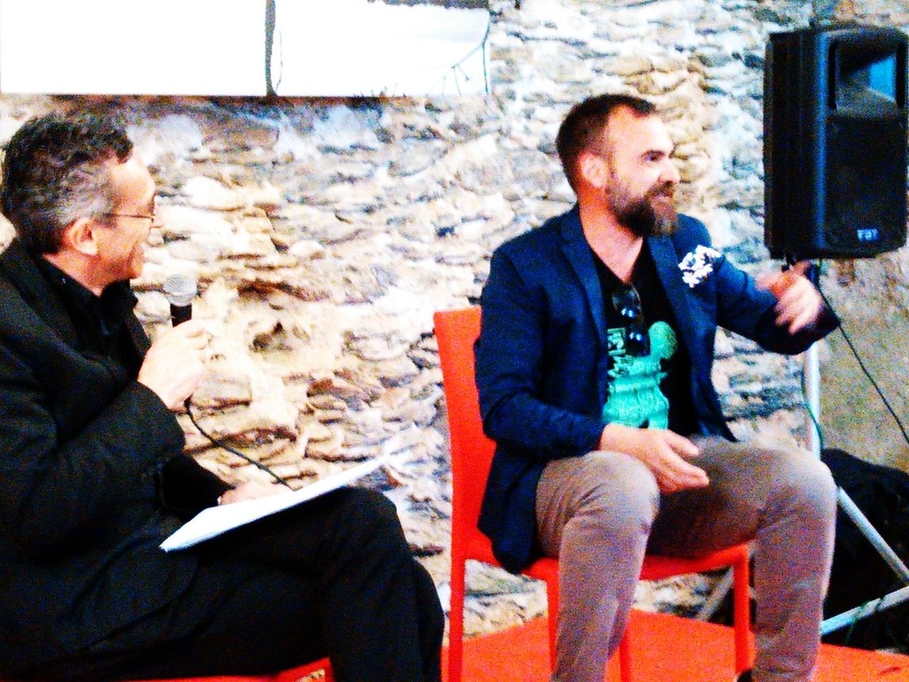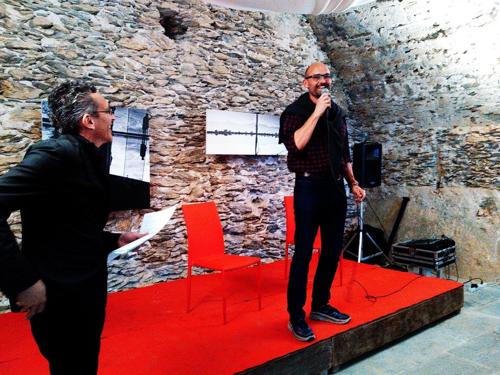 In occasione dell’inaugurazione, svoltasi sabato 13 aprile scorso, l’artista è stato accattivante e spiritoso nell’intrattenere il pubblico, intervistato dal “padrone di casa” Roberto Grossi di E20.