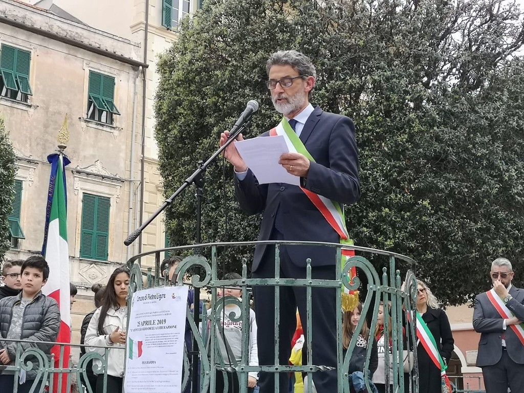 Si è svolta stamane a Pietra Ligure, come ogni 25 aprile, la consueta celebrazione della Festa della Liberazione. Ad aprire la manifestazione è stata la sfilata per le vie cittadine del corteo partito da piazza Martiri della Libertà che, accompagnato dalla Società Filarmonica “G.Moretti”, ha prima reso omaggio al Monumento ai Caduti e poi a quello al Partigiano entrambi presenti sul lungomare pietrese.