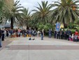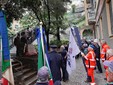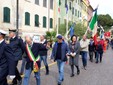 In via Bernardo Arecco il corteo si è fermato per ricordare e depositare una corona al Monumento ai Caduti dove è stato suonato l'Inno di Mameli e il silenzio.