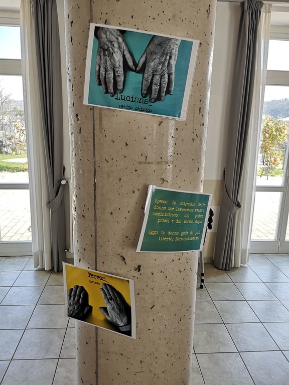 40 ospiti presenti in struttura, con la loro storia, la loro vita, il loro lavoro, fotografato attraverso le proprie mani: ogni fotografia infatti è rielaborata con effetti grafici speciali tali da renderla un’opera artistica. La mostra è ovviamente un viaggio nella nostra cultura, con particolare riferimento alla Valbormida: accanto ad ogni nome è stata scrita anche la professione e una breve storia.