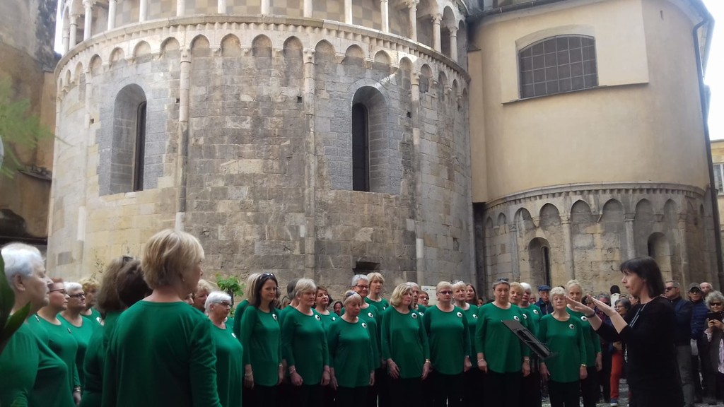 Grande successo di pubblico ieri pomeriggio in Piazza dei leoni ad Albenga per il concerto "Sound of Europe" del coro femminile della città irlandese di Bangor.