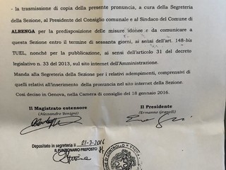 Con tanto di documenti alla mano Tomatis spiega:"Proprio su quel bilancio si è espressa la Corte dei Conti evidenziando: “La non conformità del bilancio 2013”,